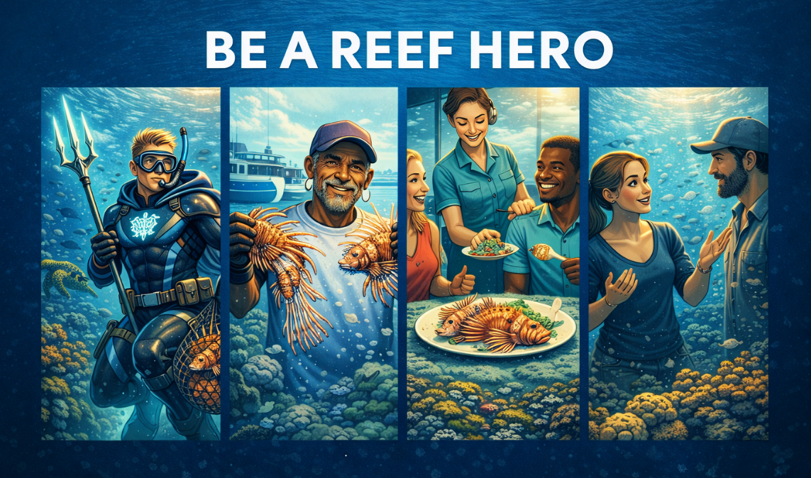Targeted removals by trained divers remain the most effective way to slow the invasion and give reefs breathing room. But control only works when action extends beyond the dive.
