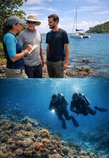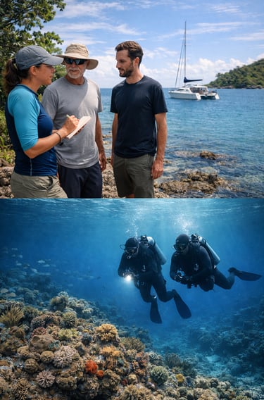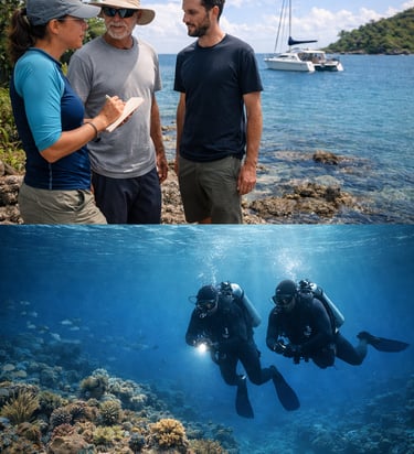 At Turn The Tide (TTT), we work underwater site by site, returning repeatedly to the same reefs. Our efforts also extend beyond the water, through discussions and information sharing with boaters, local communities, and authorities.