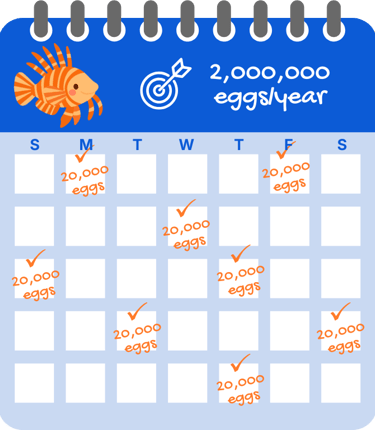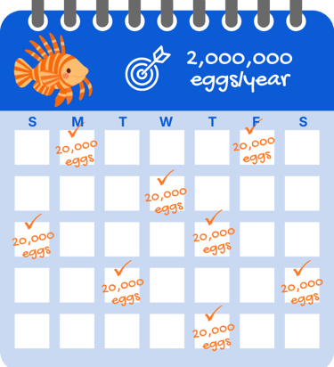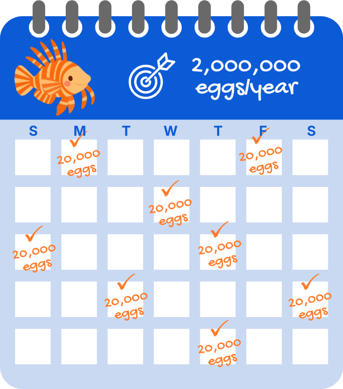 About half of all lionfish are female, and each can release up to 20,000 eggs every 3–5 days — adding up to around 2 million eggs per year.
