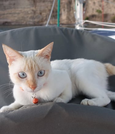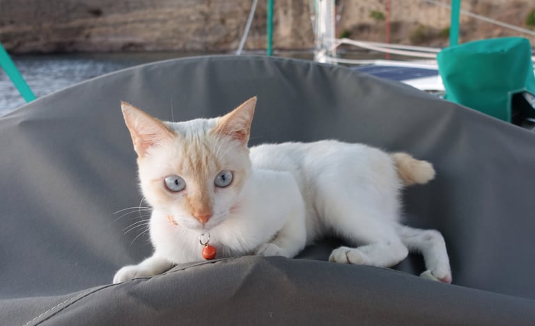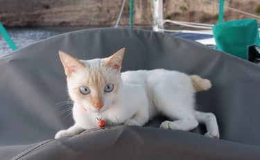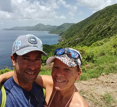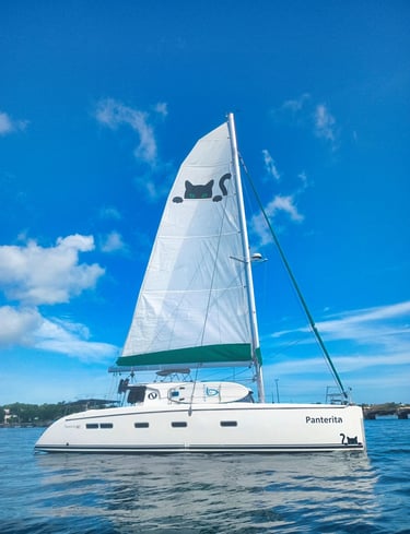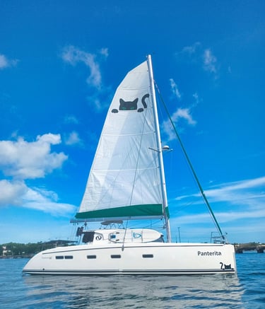 In November 2023, we sold everything in Canada and moved aboard Panterita, our solar- and wind-powered catamaran. After being purchased and refitted in Puerto Rico, she has carried us down the Caribbean island chain. Our crew also includes Pookie, a former street kitten from Guadeloupe who quickly adapted to life at sea—and developed a clear fondness for lionfish.