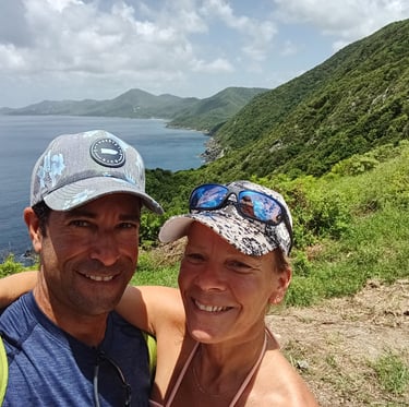 In November 2023, we sold everything in Canada and moved aboard Panterita, our solar- and wind-powered catamaran. Purchased and refitted in Puerto Rico, she has carried us down the Caribbean island chain. Our crew also includes Pookie, a former street kitten from Guadeloupe who quickly made herself at home and developed a clear fondness for lionfish.