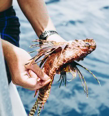 Patrick was introduced to scuba diving eight years ago. Since then, he has become a highly skilled diver and lionfish hunter. After nearly 4,000 removals, his approach is precise, efficient, and responsible. Each fish is dispatched immediately upon capture to minimize suffering. For us, lionfish control is not sport—it is intervention carried out with care.